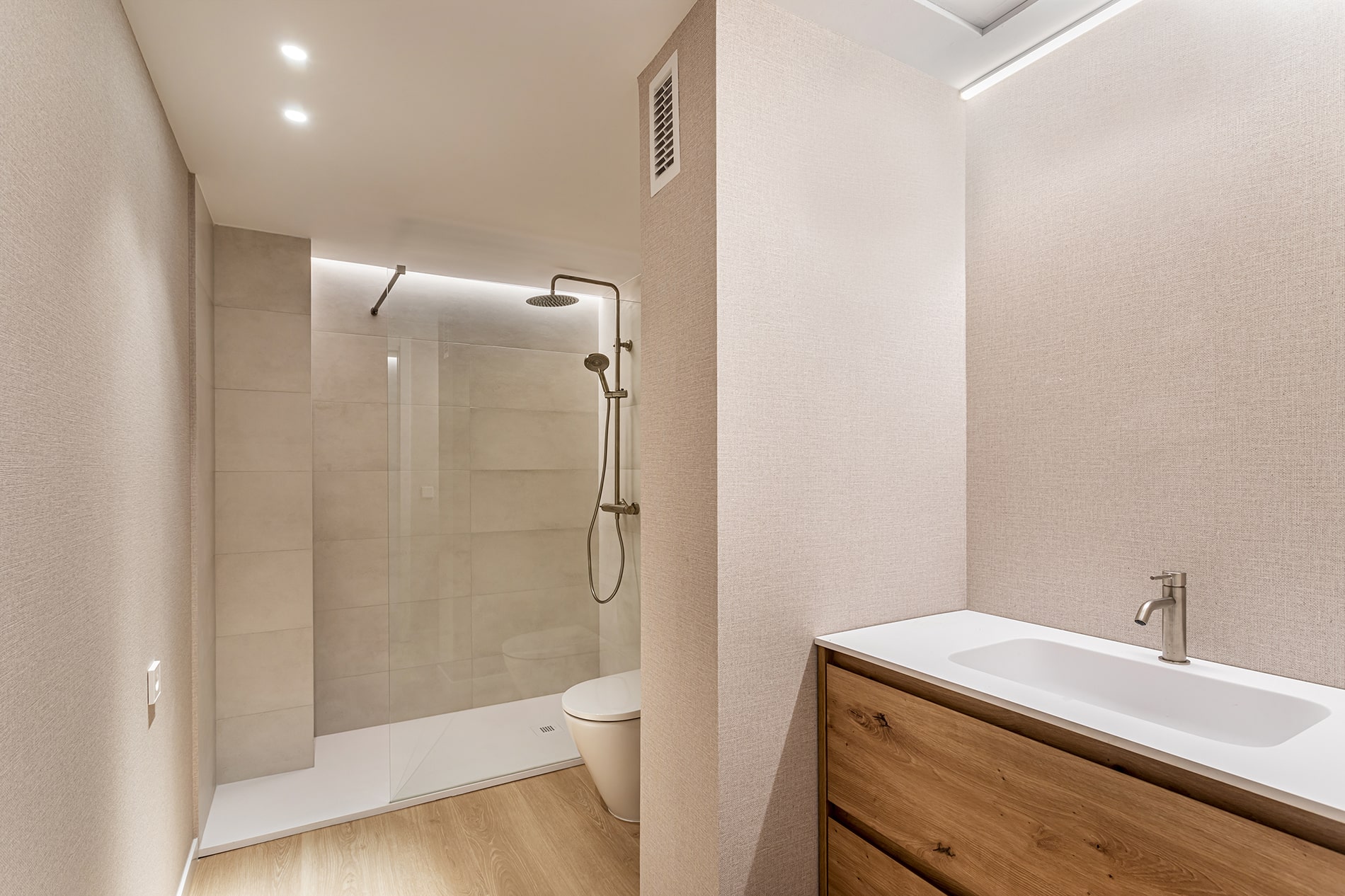 En esta vivienda se ha tenido un especial cuidado en la elección de los revestimientos y la iluminación.